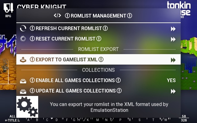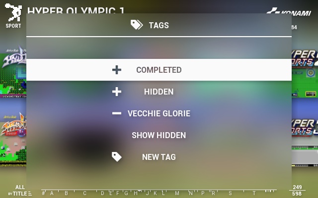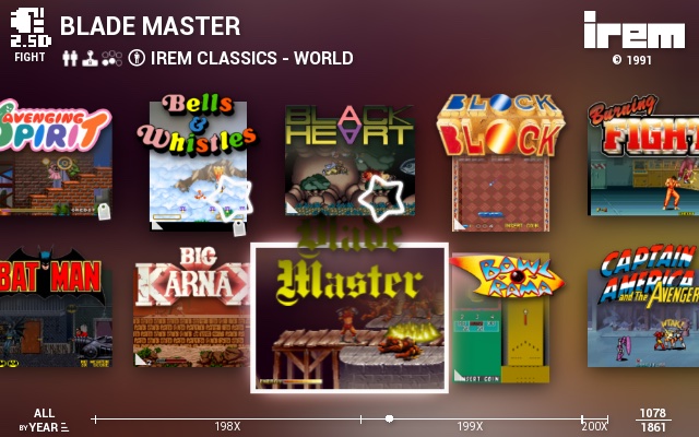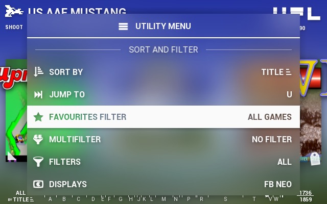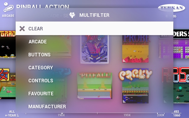 When you hit the select button, an integrated context menu emerges overlayed beautifully. Filter "more of the same..." based on manufacturer, manage game favorites, update game states, or enter the dedicated History text-reader panel.